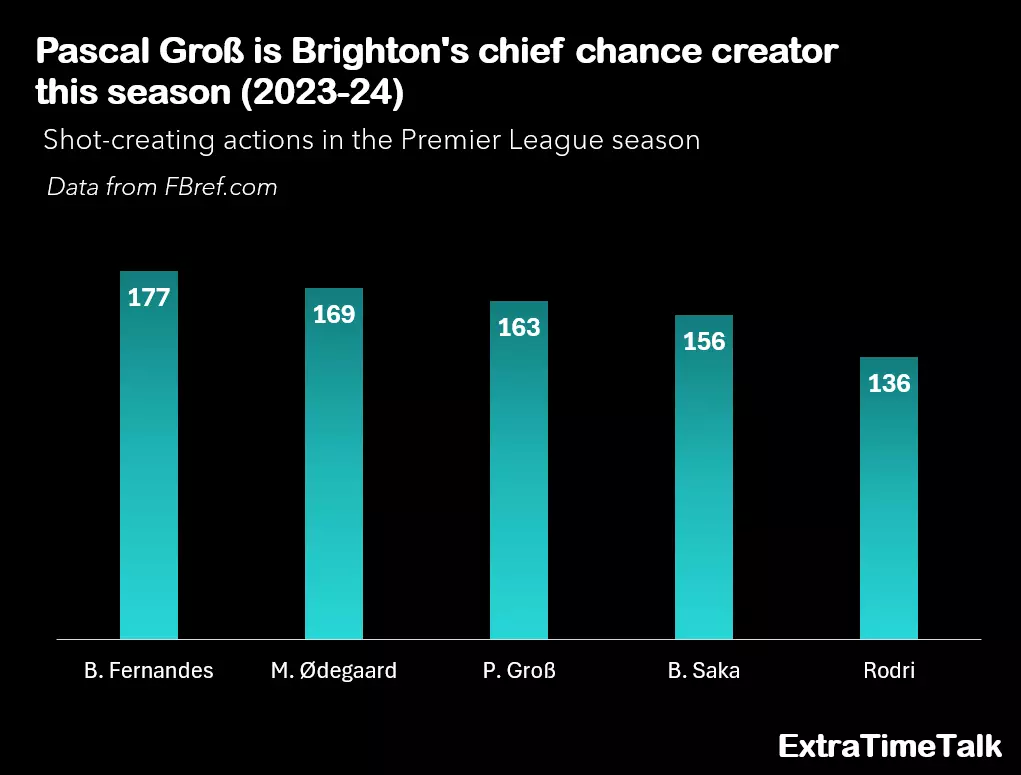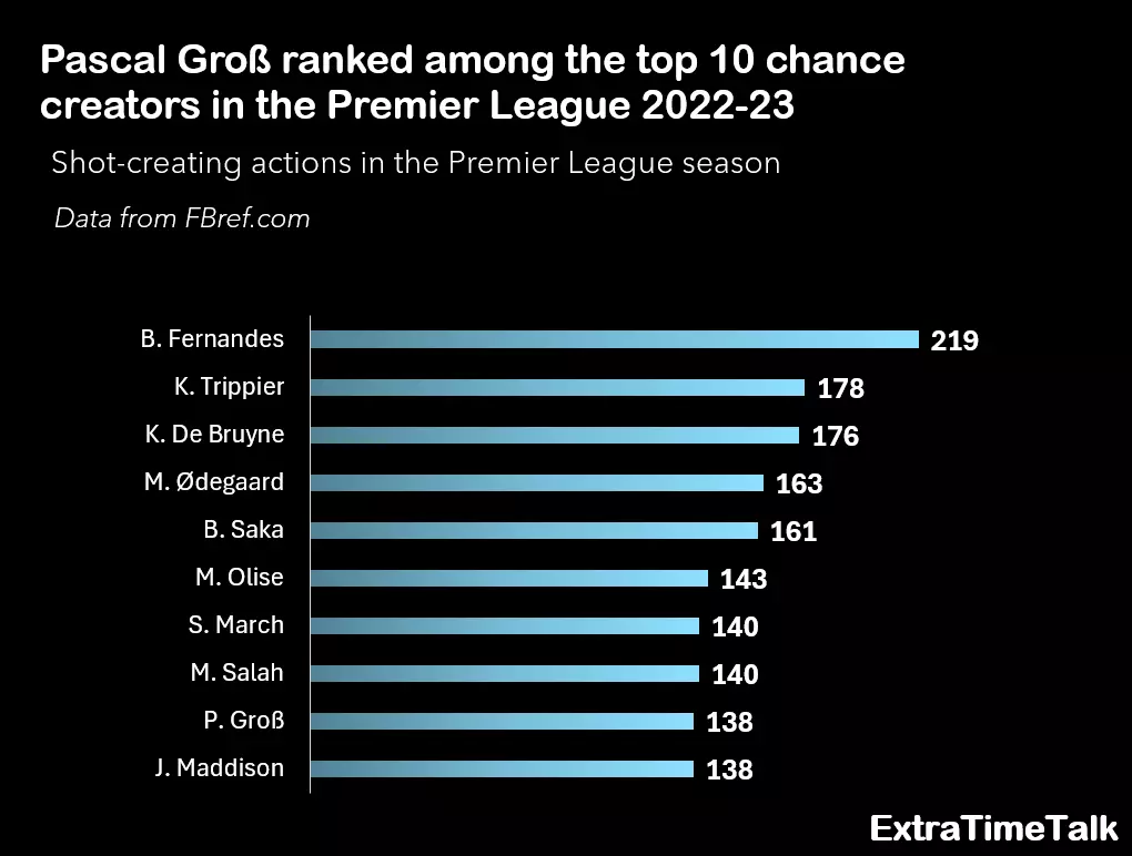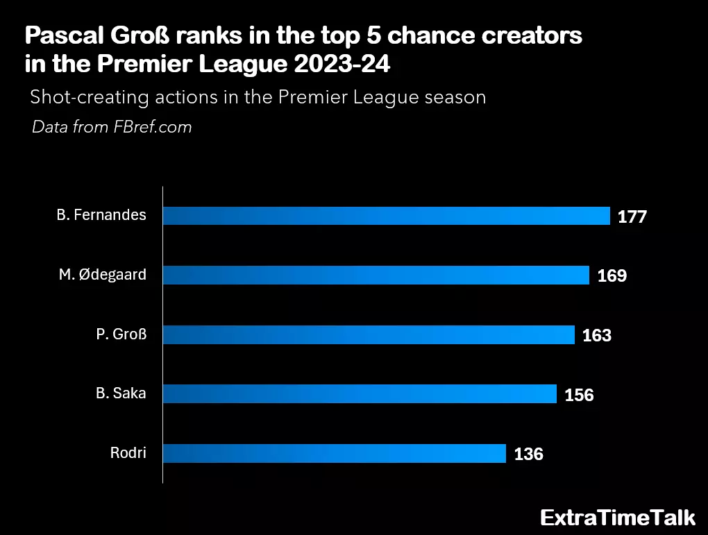 Moreover, Groß ranks in the top five for SCA in the Premier League.