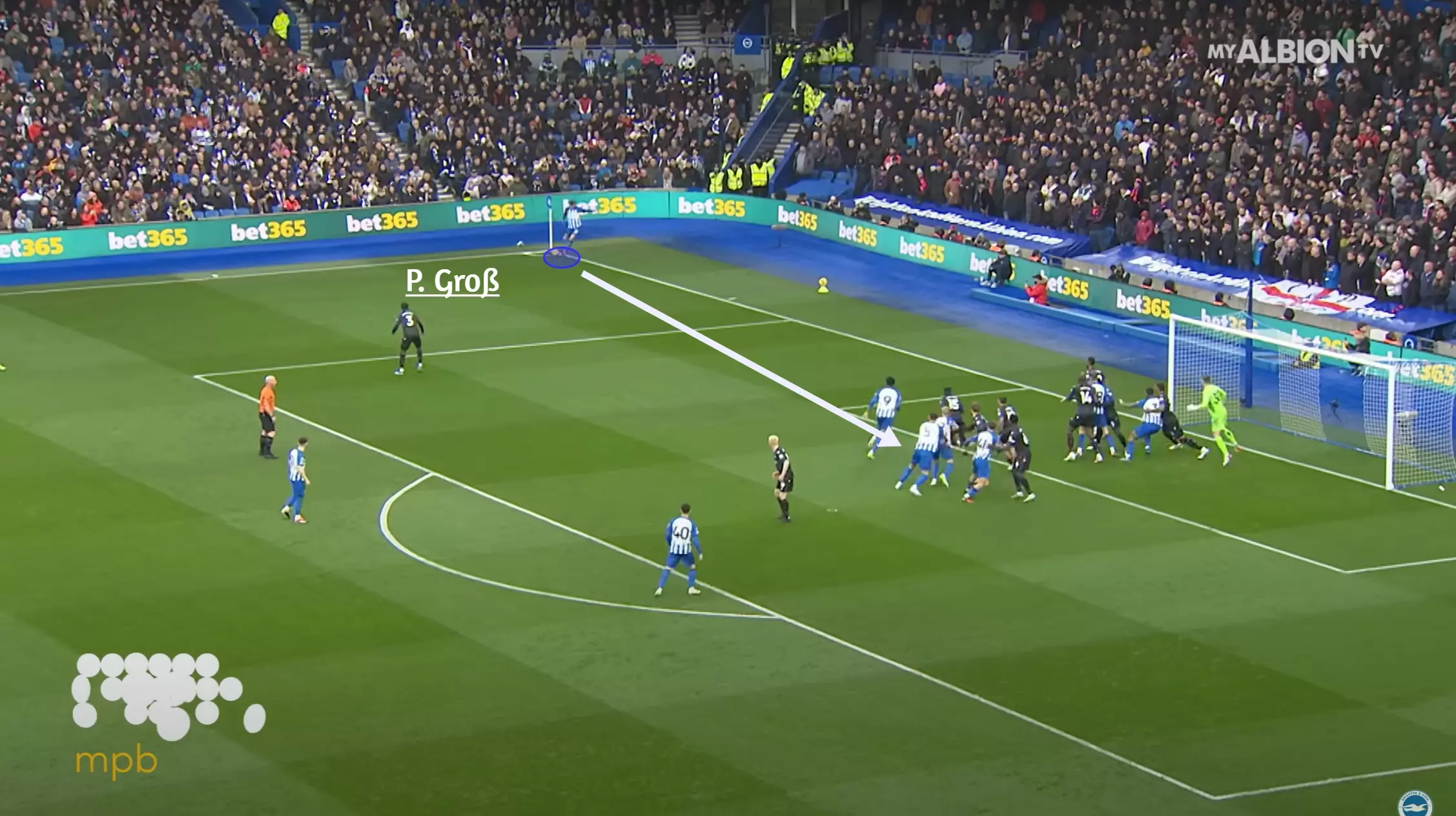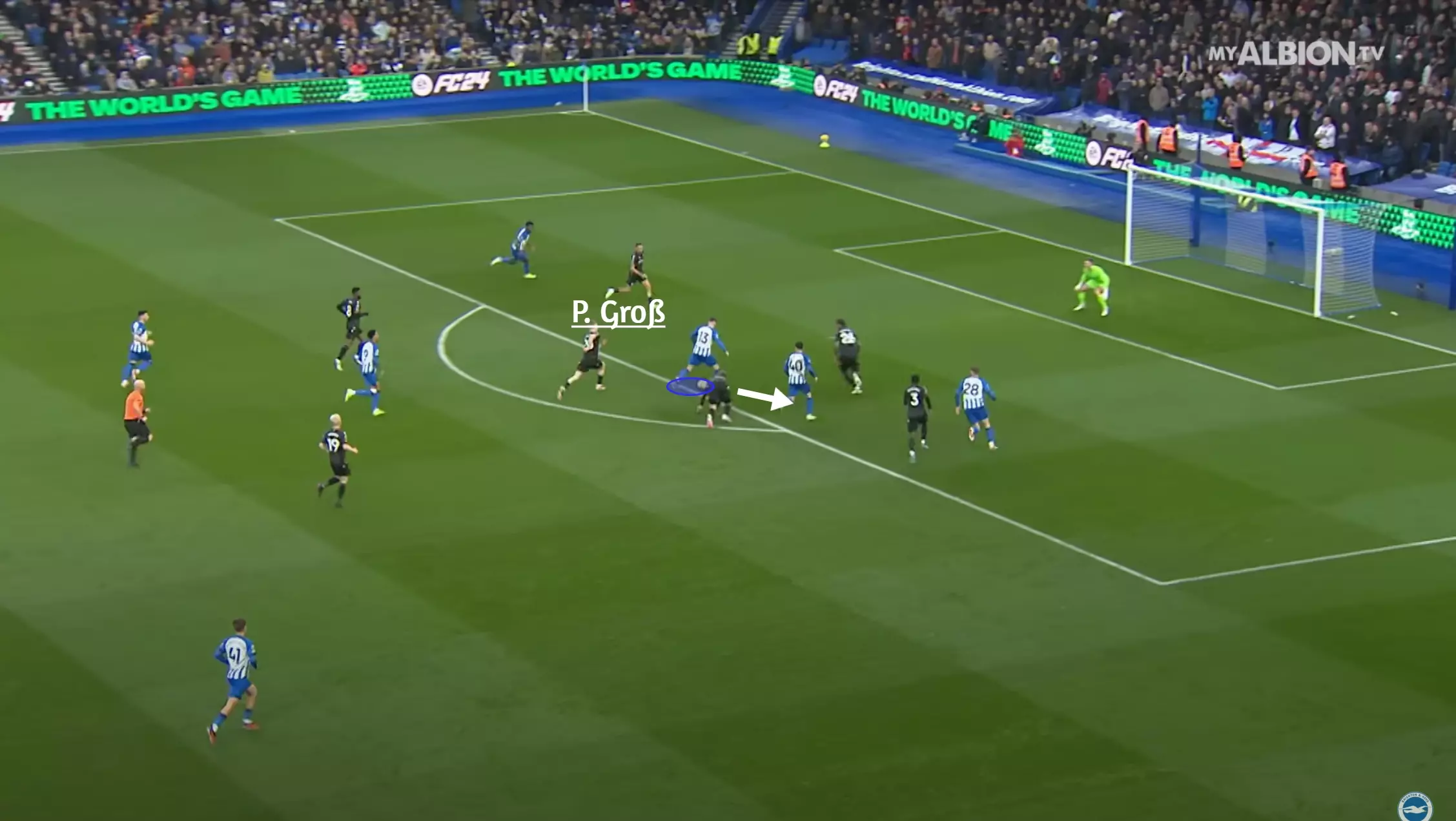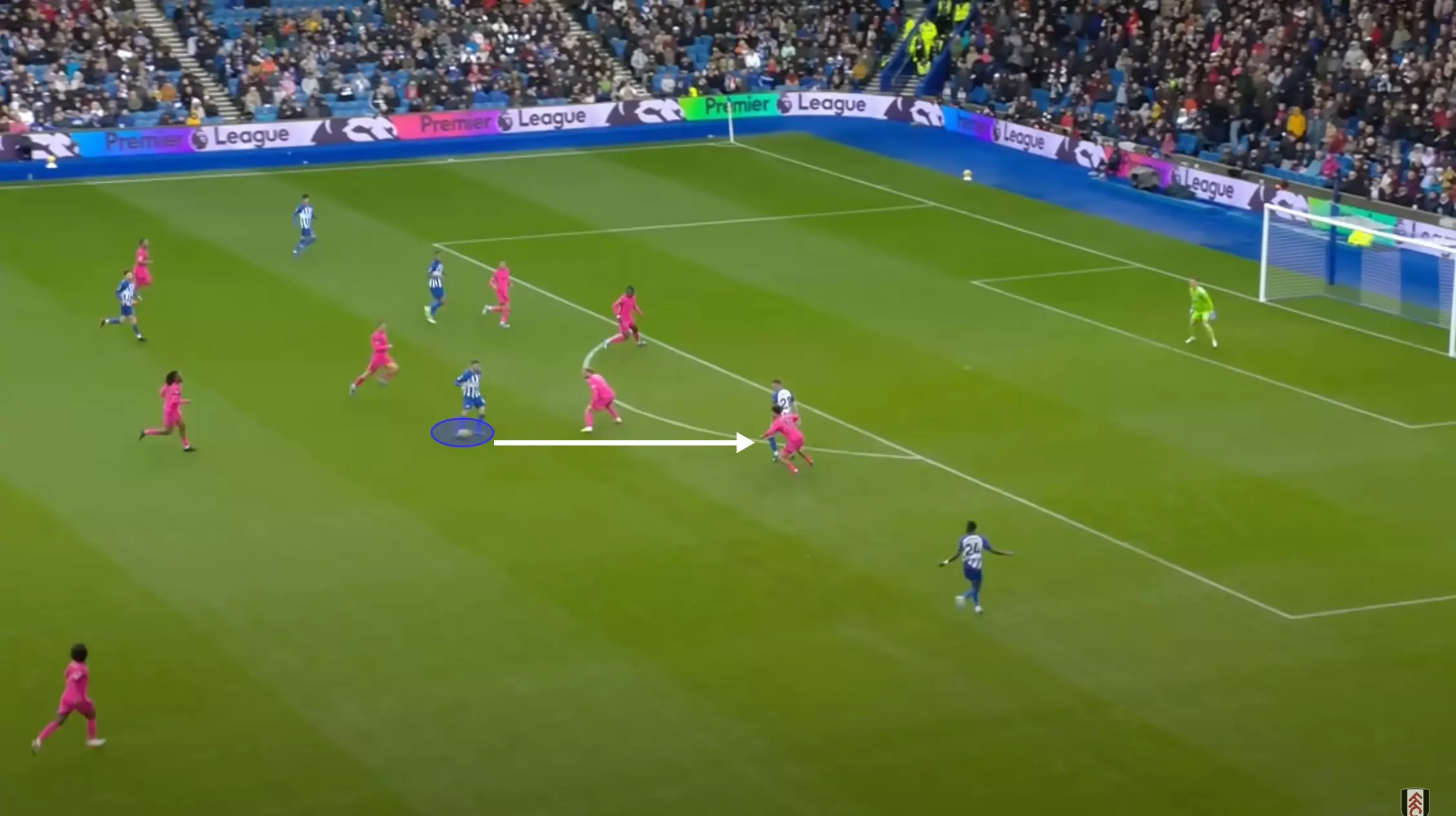 Groß is also a threat from open play as his incisive passing can thread accurate balls through opposition off-ball structures and unlock tight defensive units. Instances from this season include his assists against Palace, Fulham, and Marseille.