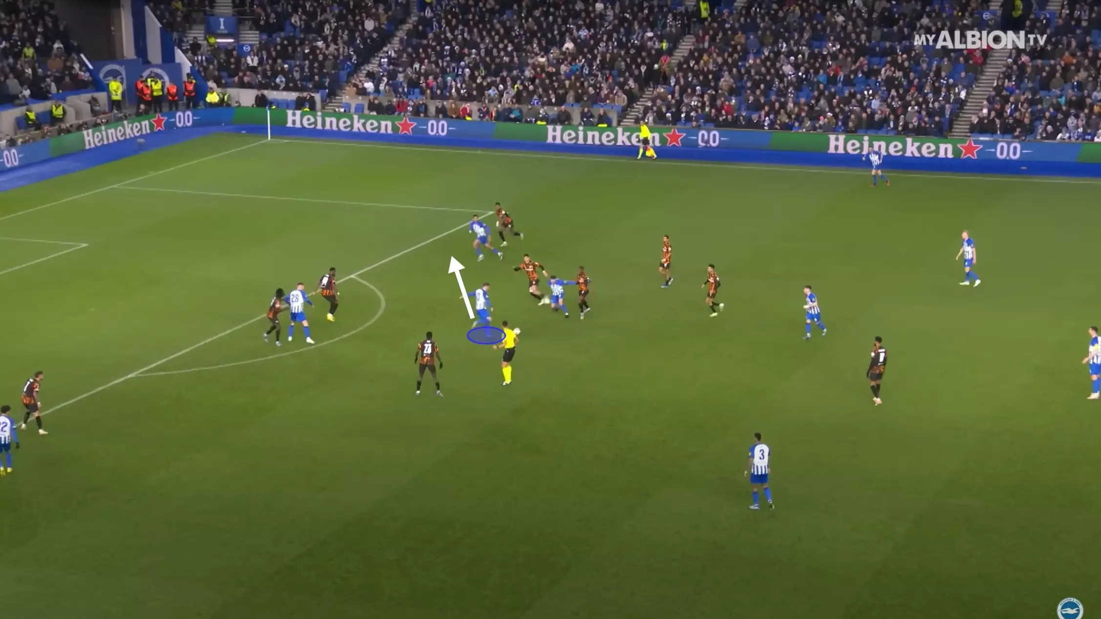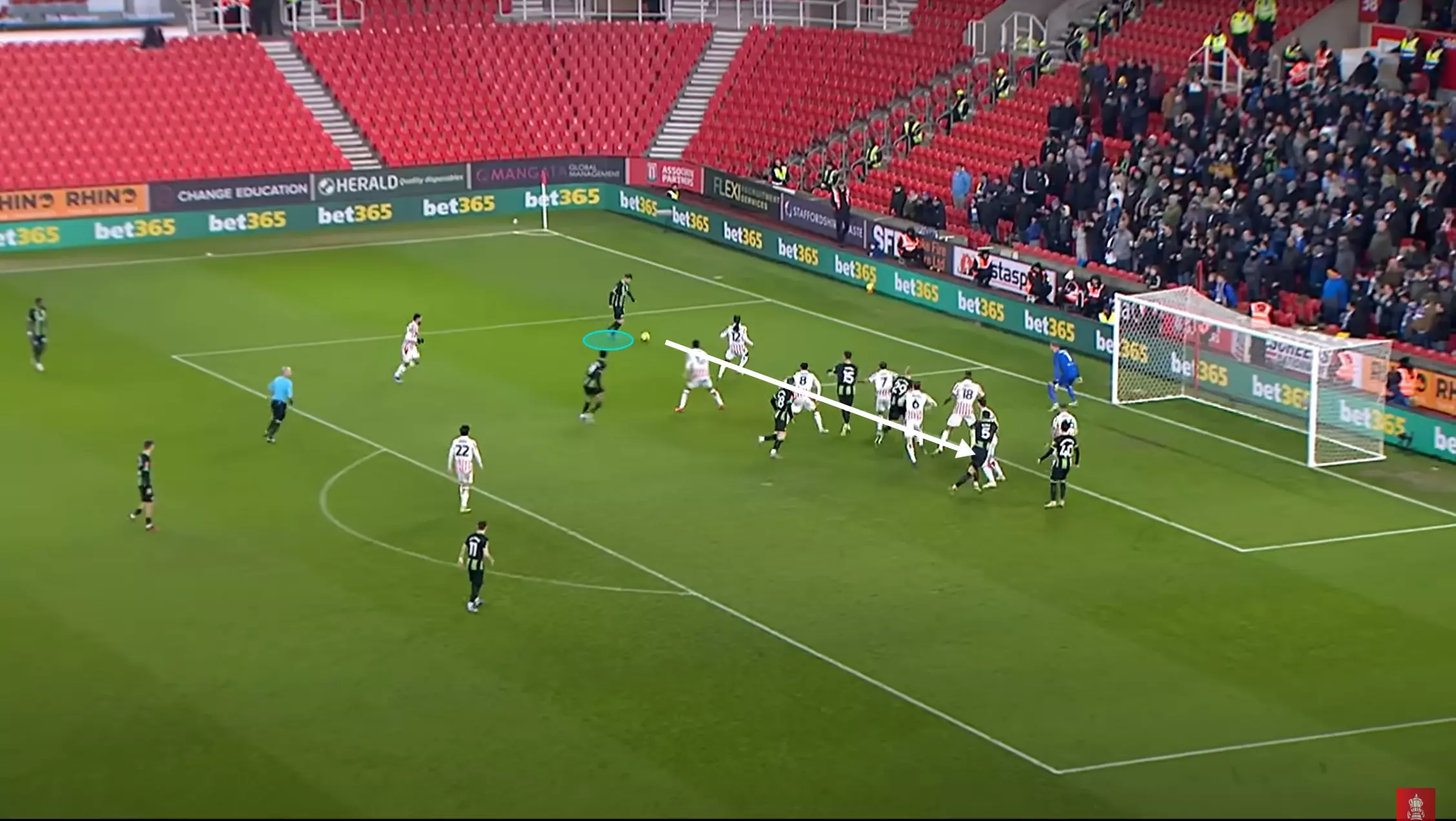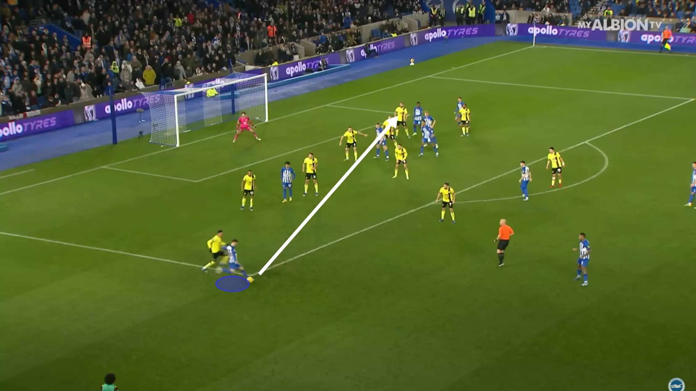… and from short corner routines, like his assist against Stoke City where he found Dunk’s acute run after receiving a quick bounce pass from his teammate.